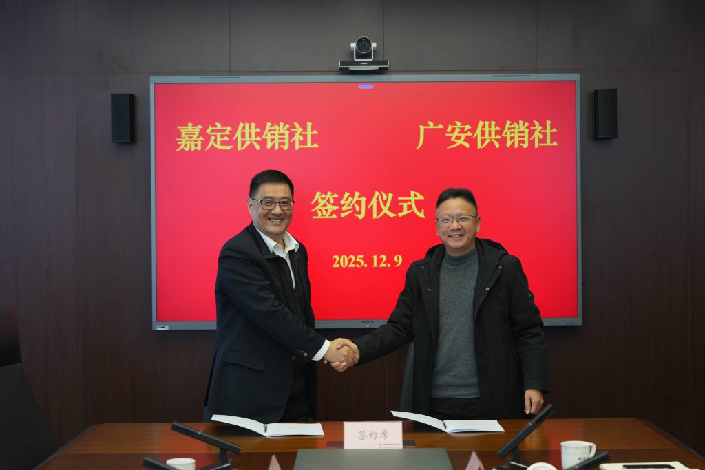 在双方代表的共同见证下,广安供销社和嘉定供销社正式签署战略合作补充协议,广安供销社正式加入“山海同心・地级供销合作社产销战略联盟体”。